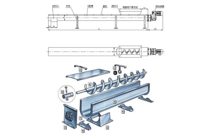 絞龍螺旋輸送機的結(jié)構(gòu)特點及產(chǎn)品特點: